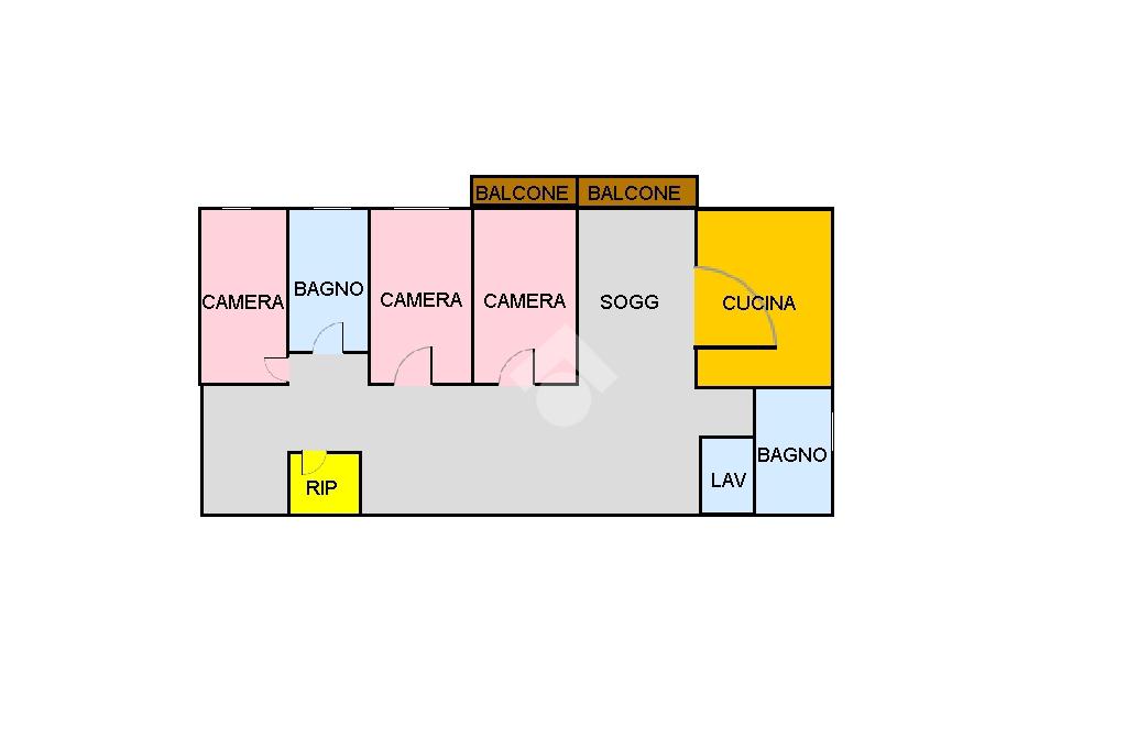 L'immobile, non arredato, è composto da una luminosa cucina-soggiorno, due camere da letto matrimonia, una cameretta, due bagni, una lavanderia e un comodo ripostiglio.