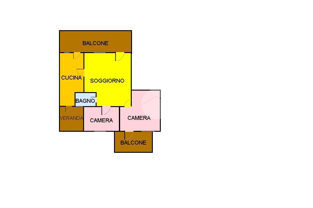 L'immobile è composto da soggiorno, cucina, due camere da letto, bagno e una veranda. Gode di una doppia esposizione.