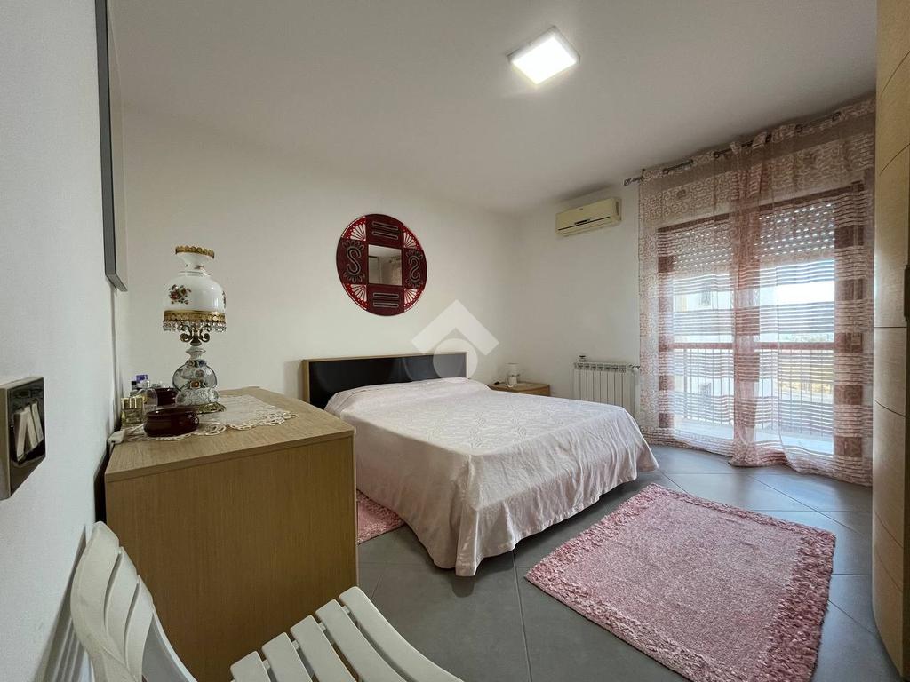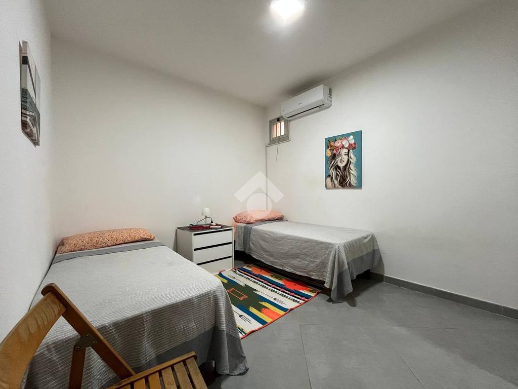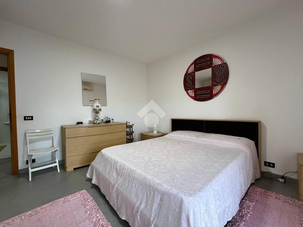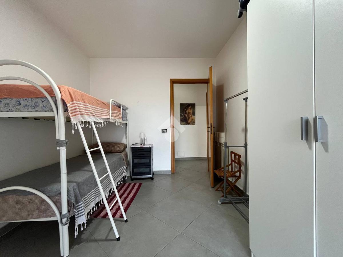 Situato al primo piano di un condominio, l'appartamento di 130 mq è composto da un ampio soggiorno, una cucina con balcone, due bagni e due camere da letto con balcone vista mare. L'appartamento include anche un posto auto interno assegnato.