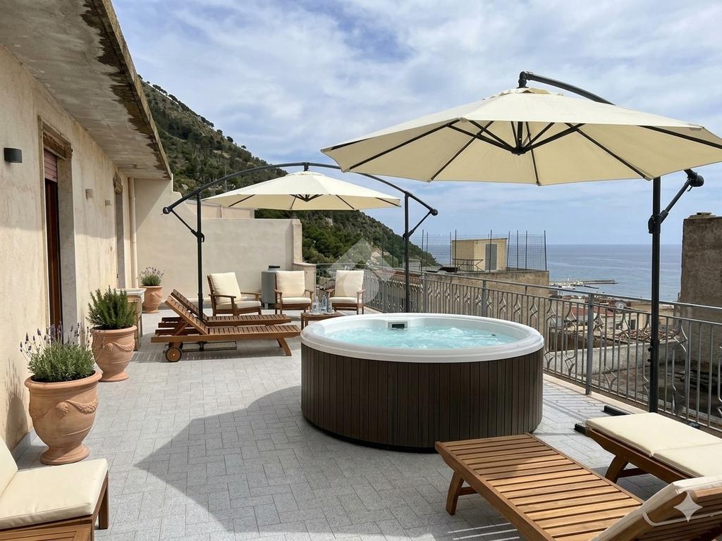 Al terzo piano si trova un ampio terrazzo panoramico con vista sul Golfo di Castellammare, ideale per momenti di relax e convivialità all’aperto.