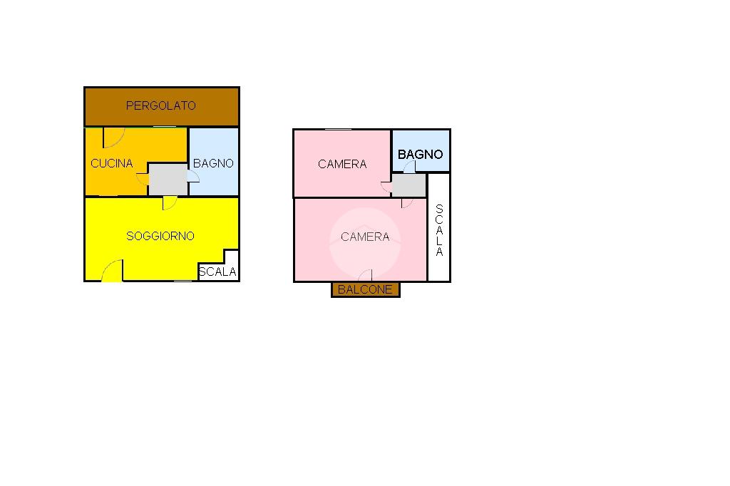 L'immobile si sviluppa su due livelli, al piano terra zona giorno comprendente soggiorno, cucina e un bagno.